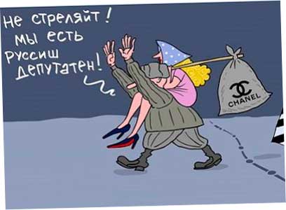 Карикатура 18.02.2017 - от Модератор Блогосфера о бегстве в Украину экс-депутатов Госдумы Вороненкова и Максаковой