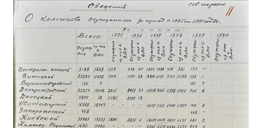 Справка о числе приговорённых к расстрелу по областям УССР с 1935 по…