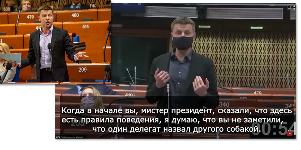 Свое выступление в ПАСЕ Гончаренко начал с оскорблений в адрес России и президента Владимира Путина.