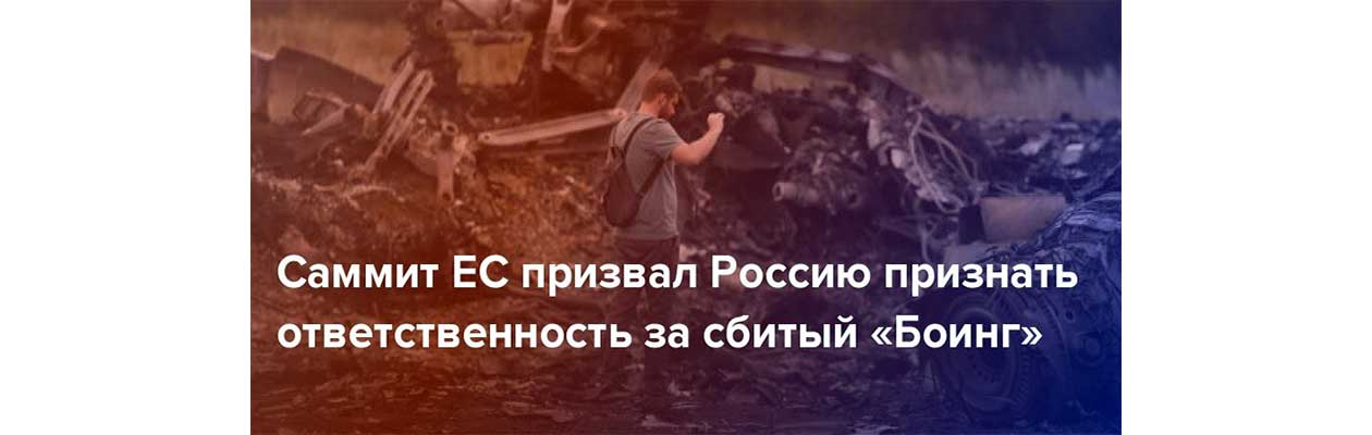 В документе говорится, что Евросовет подтверждает полную поддержку резолюции СБ ООН 2166, касающуюся сбитого рейса МН17. Она призывает РФ признать ответственность и в полной мере сотрудничать с прилагаемыми усилиями по установлению истины, справедливости и ответственности.