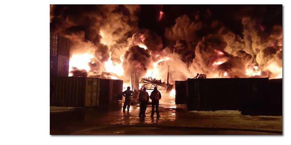 Страшный пожар на строительном складе в Петербурге: видео с места