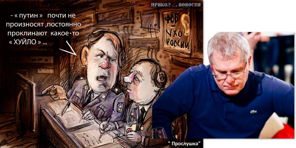 На титульном фото (в мобильной версии не отображается): Предприниматель Герман Князев (Фото с личной страницы Германа Князева в Facebook) на фоне карикатуры на прослушку ФСБ, – Ремарки «Слова»