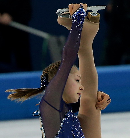 ITAR-TASS: SOCHI, RUSSIA. FEBRUARY 9, 2014. Fifteen-year old Julia (Yuliya) Lipnitskaia (Lipnitskaya) of Russia performs during the team ladies figure skating short program in the Iceberg Skating Palace at the 2014 Winter Olympics. (Photo ITAR-TASS/ Vladimir Smirnov)