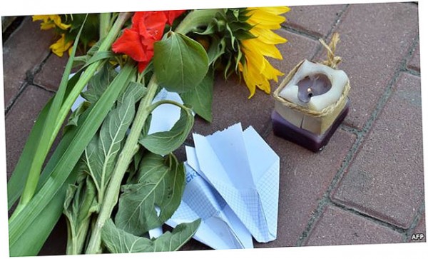 Рашистский фюрер трепыхается. Цветы, свечи, бумажные самолеты перед посольством Нидерландов в Киеве – 17 июля 2015 года, в годовщину трагедии