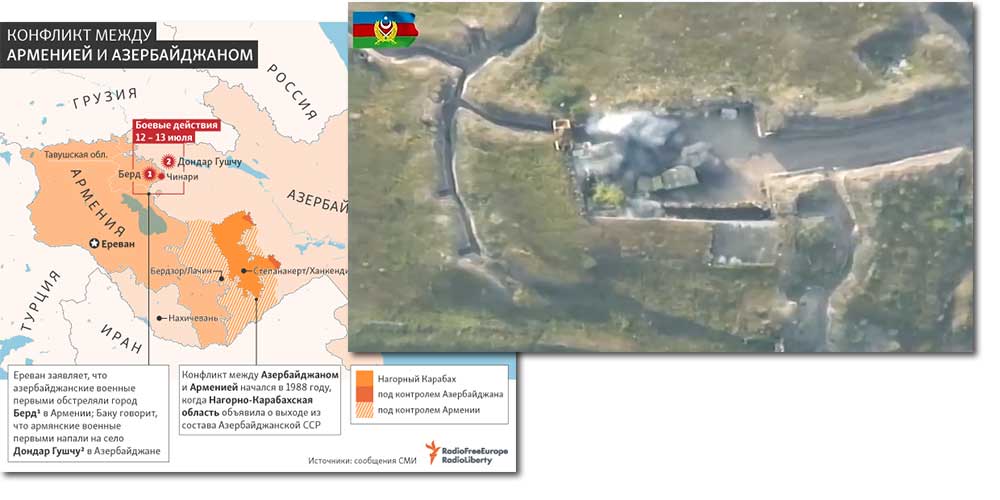 Конфликт между Арменией и Азербайджаном обострился 12 июля. На границе между странами произошли перестрелки, в последующие дни стороны тоже сообщали об обстрелах. Также у стран возникли разногласия в подсчете жертв. 16 июля на границе Армении и Азербайджана возобновились боевые действия.