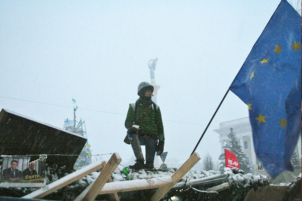 А Украина той ночью — ночью штурма — все-таки вошла в ЕС. Во всяком случае — Майдан точно. На одном из проходов через баррикады тут так и написано: «Вход в Европу».