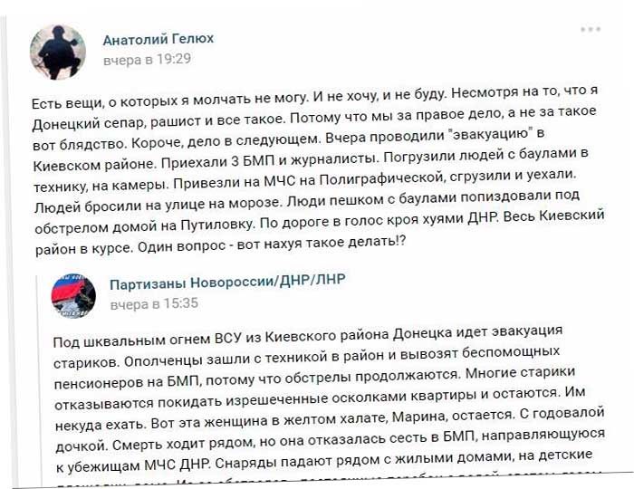 feyk 04.02.2017 - от Модератор Вот например, как сепары проводят «эвакуацию страдающего от обстрелов укропов мирного населения Донецка»